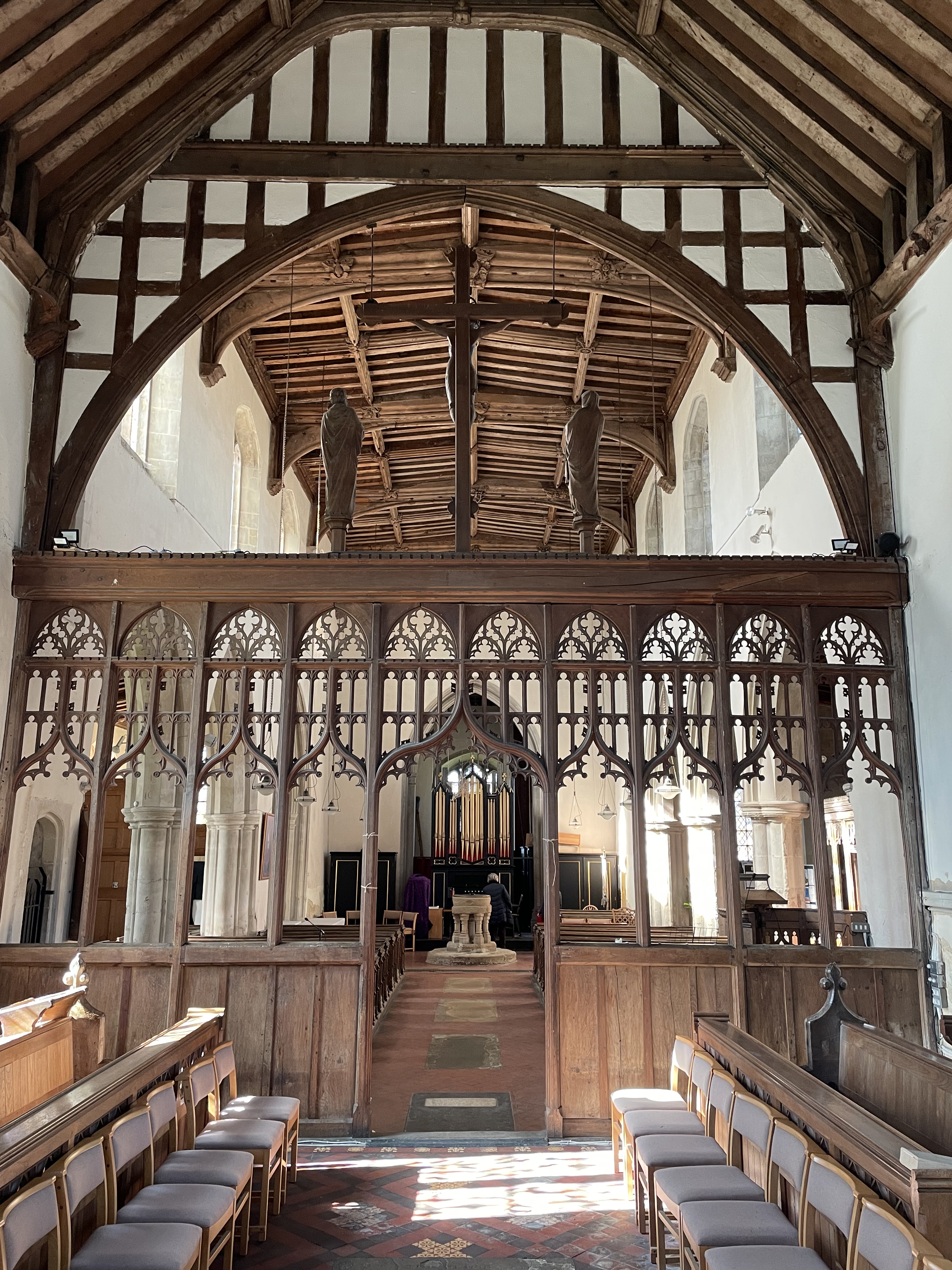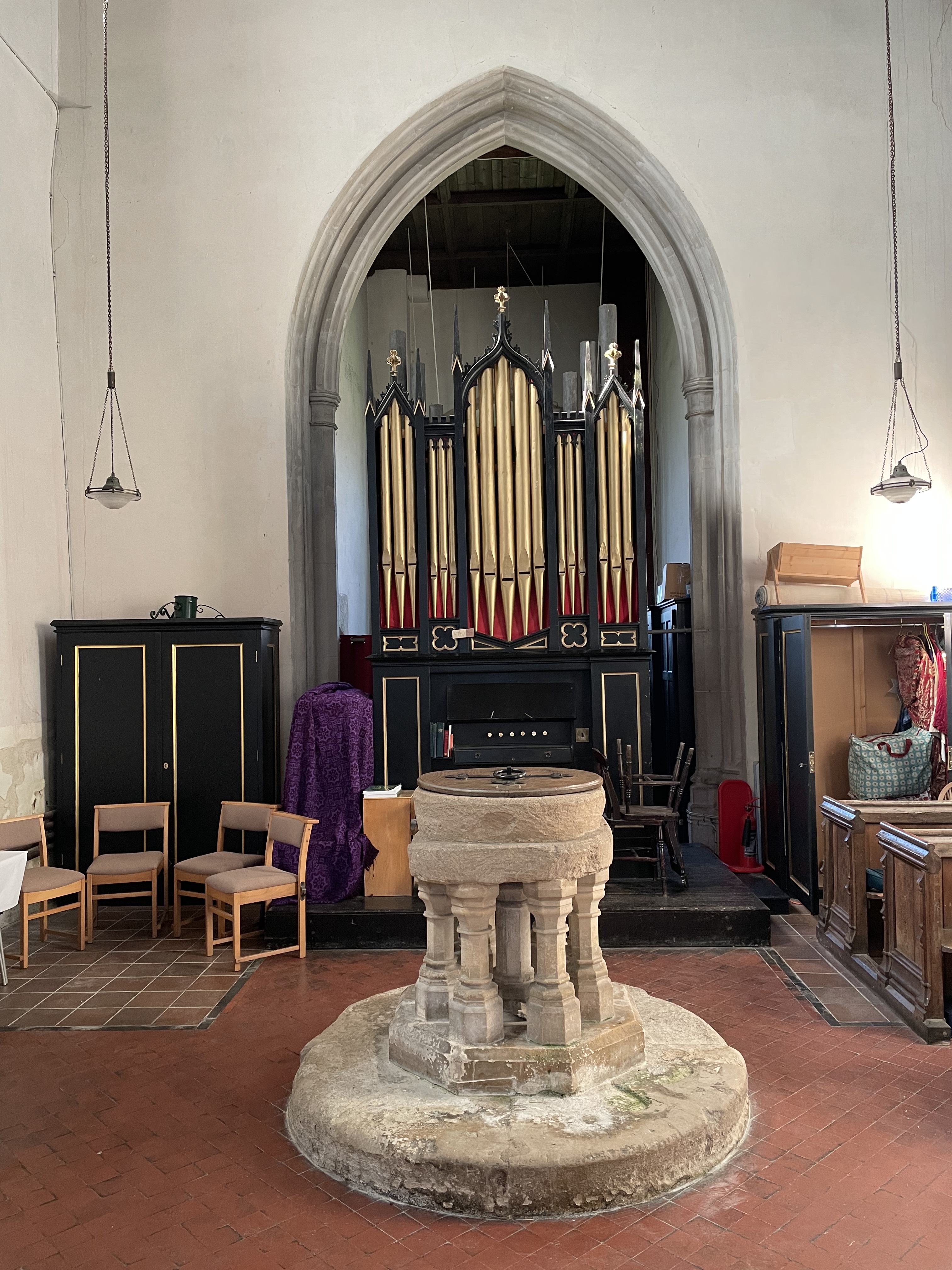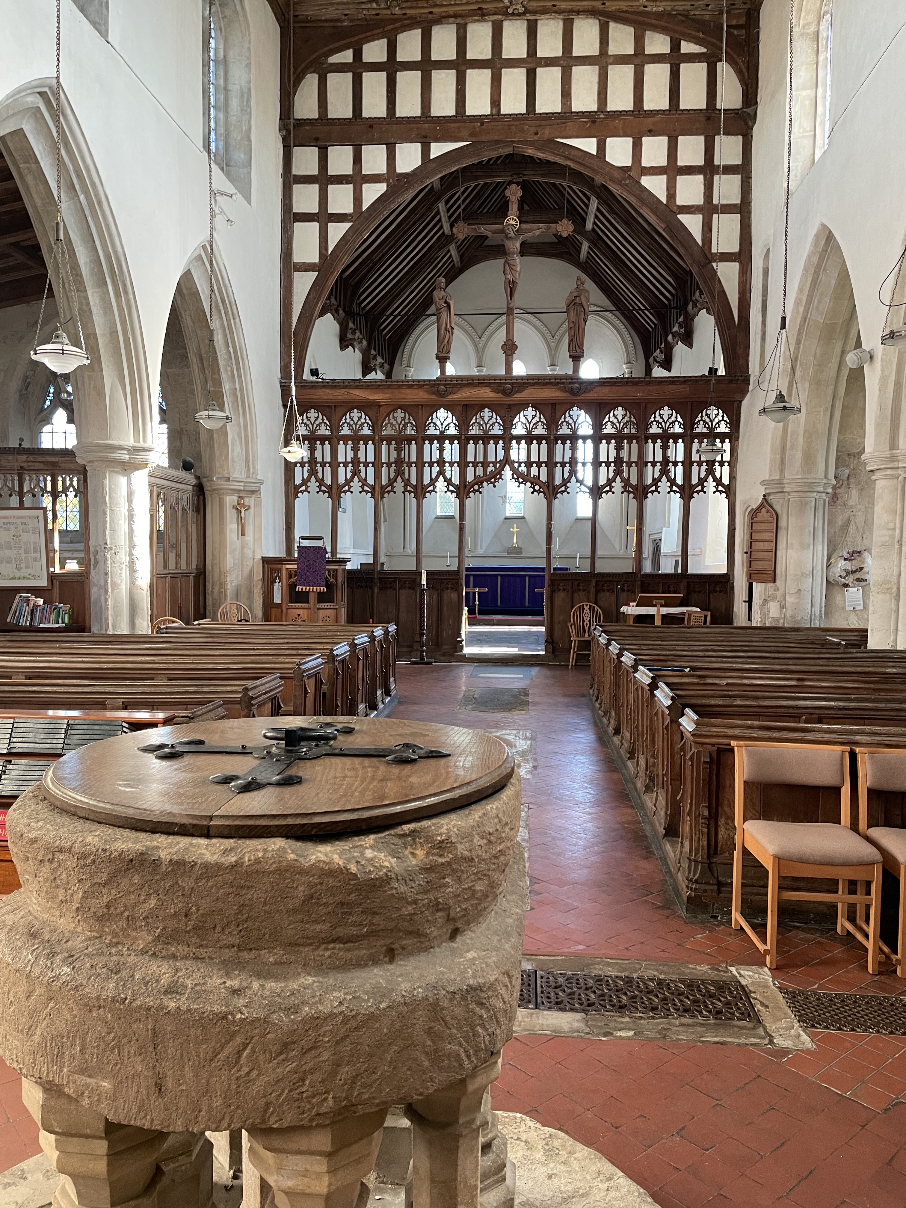 St Laurence’s is a Grade I listed building, and occupies a site to the south of the High Street near the centre of the village. Parts of the building date back to the 13th century, although a church has stood on the site for more than 1,000 years. The tower houses five bells, which can be rung or chimed, and an electrically driven clock strikes the hours.